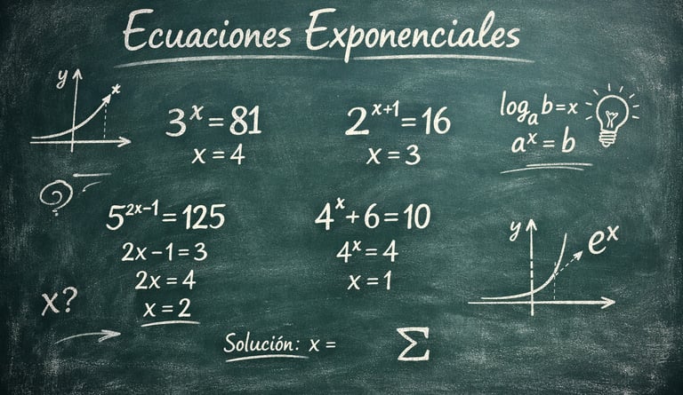 Las ecuaciones exponenciales son un tipo de ecuación muy habitual en matemáticas y aparecen por primera vez de forma clara en 1.º de Bachillerato. En ellas, la incógnita se encuentra en el exponente, lo que puede hacer que al principio parezcan complicadas.